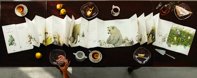 Śladu kalek postaci nie ma za to w obrazie. Concejo narysowała oryginalną parę dziwaków, a od siebie dołożyła nieistniejącego w tekście Niedźwiedzia pełnego niemego smutku, i kilka psów. Te postacie i stworzona przez nie osobna historia odkrywają kolejne dno opowieści Bieńczyka i dopisują bardziej pozytywne – niż przewidział autor – zakończenie.