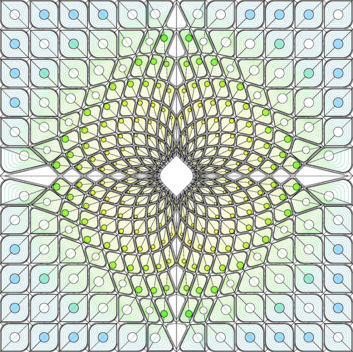 Projekt musiał być kuglarski jak na stolicę Bollywood przystało. Tak jak filmy muszą być piękniejsze niż życie, tak miasto snów wymagało bardziej radykalnych środków. Architekci zainspirowali się tradycyjną formą hinduskich ażurowych pawilonów, tyle że przeskalowali ją i wyczyścili ze zdobień, pozostawiając odwołanie tylko do jednego narodowego symbolu.